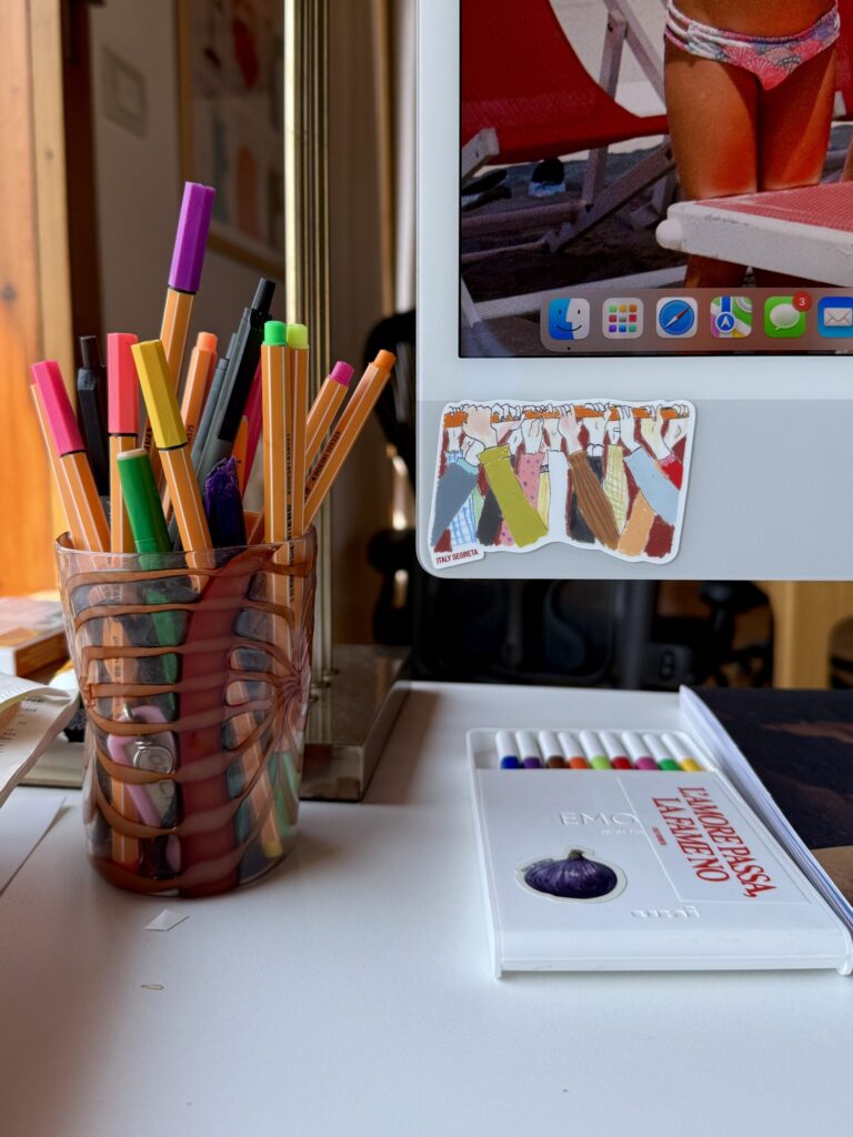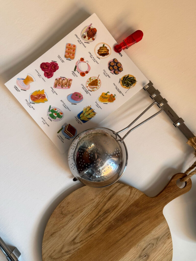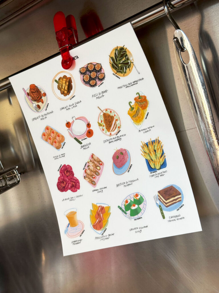1/12 A Tavola Sticker Pack €18,00 In stock Quantity A Tavola Sticker Pack quantity Add to cart View cart Description You’ve read the A TAVOLA collectible issue—now it’s time to stick with it (literally). This playful pack includes two sheets of stickers: one filled with top Italian food sayings and illustrations inspired by them, courtesy of local illustrator Paola Ressa, and another featuring our favorite dishes by illustrator Maxine McCrann. Think spiky sea urchins, perfect melons, saucy spaghetti, and other edible icons to keep your laptop, water bottle, or notebook in good taste. Each sticker is printed on thick, durable vinyl that resists scratches, sunlight, and spilled wine. Details Size: 21.23 cm x 27.5 cm Quantity: Two sheets with 23 individual stickers total Shipping & Returns